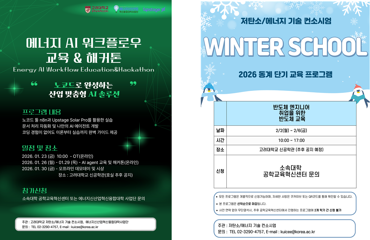 - 프로그램 관련 : 고려대학교 공학교육혁신센터 (02-3290-4757, kuicee@korea.ac.kr)