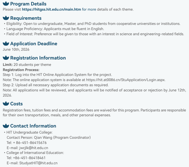[하계강좌/지원금 제공] 2026 중국 Harbin Institute of Technology Global Summer School (HITGSS