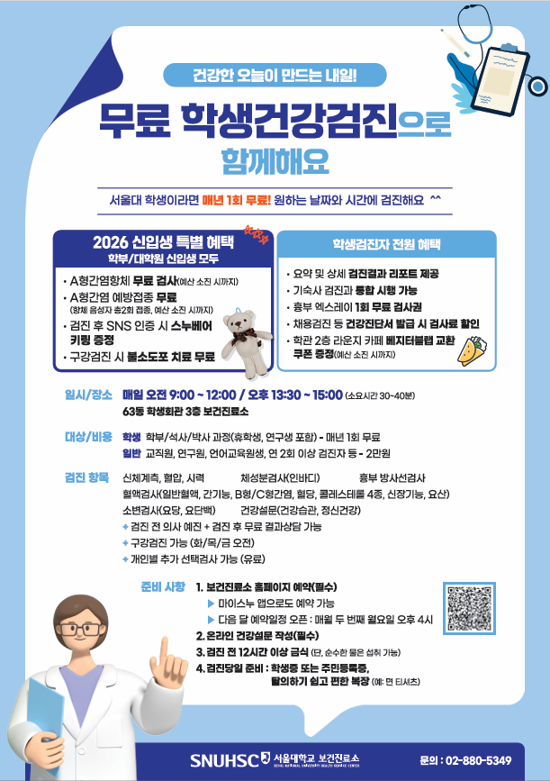 [서울대 보건진료소] 2026학년도 학생건강검진 안내