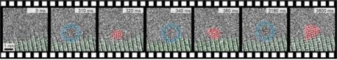 [Picture 2] High-resolution electron microscopy footage of the birth of gold nanocrystals.