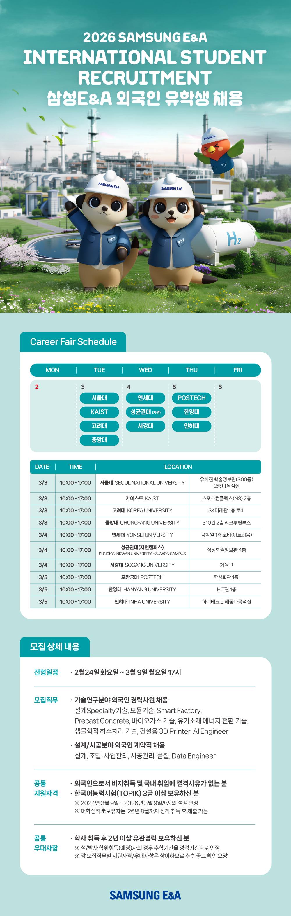 2026 Samsung E&A International Student Recruitment (Korean Proficiency Required / above TOPIK level 3)